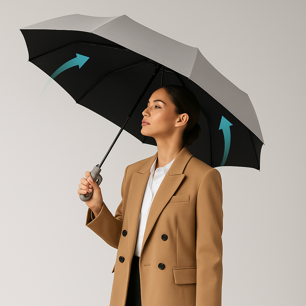 Affrontez la pluie et le vent avec style grâce à Contrevent, le parapluie urbain pensé pour allier élégance et résistance en toutes circonstances.